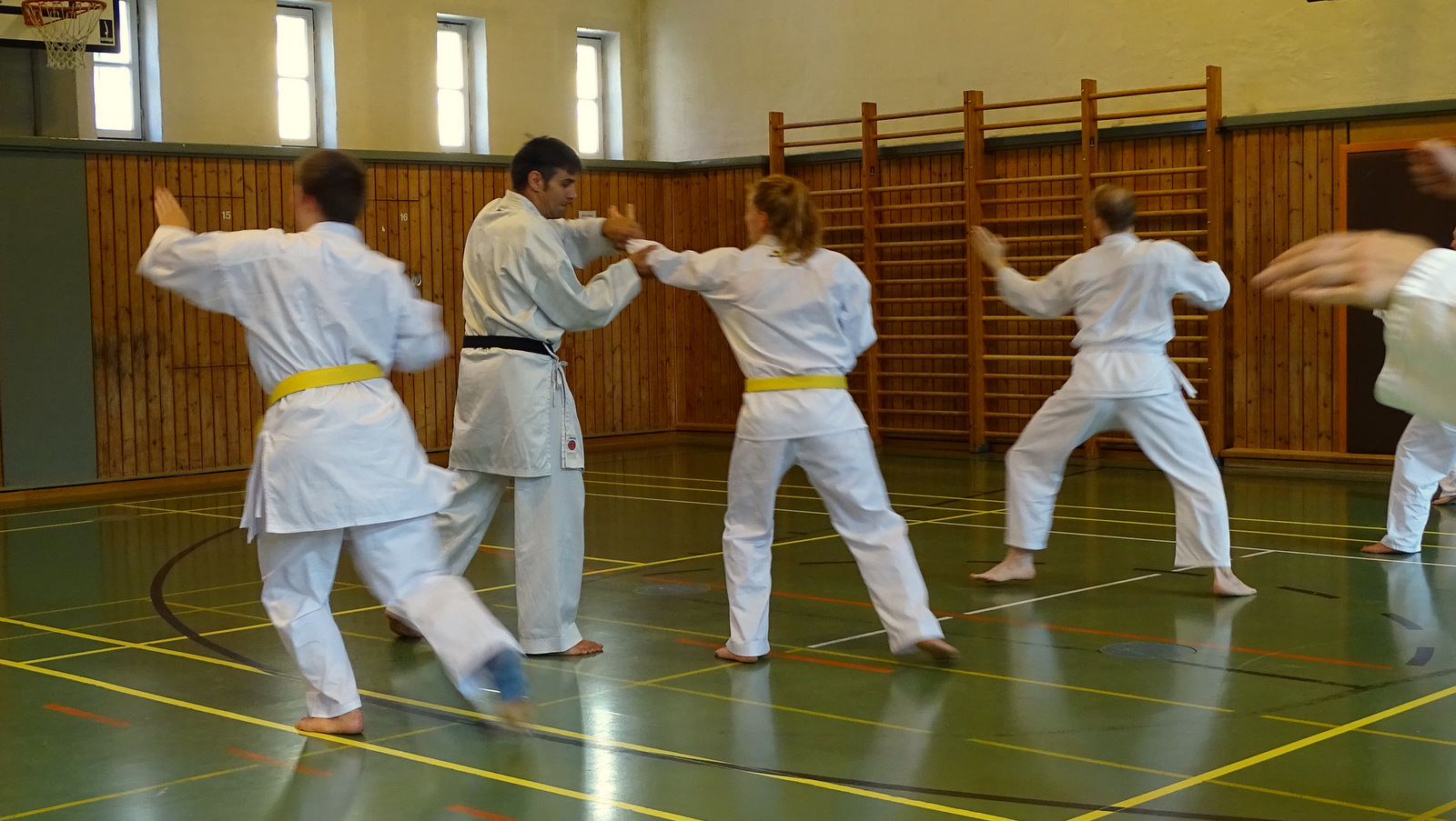 An diesem Tag wurde das bisher im Club durchgearbeitete Programm wiederholt und vertieft. Es hat den Teilnehmern Spaß gemacht und bot auch genügend Herausforderungen, da wie üblich neben den Aufnahme-Kandidaten auch einige „höhere Gurte“ an der Schulung teilnahmen. Somit hatten die Prüflinge nicht nur die Gelegenheit andere „Stufengleiche“ aus den Clubs der Region kennen zu lernen sondern auch die eine oder andre Übung mit einem erfahrenem Partner zu absolvieren.